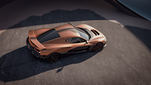 Only nine bespoke examples will ever be built, with the first car finished in a new shade of copper, debuting matte paintwork on the Nevera for the first time. The copper shade has been specifically developed for its connections not only with times of celebration, but also to energy, as well as its more practical application as the material most widely used in electrical cables. A new full visible carbon fiber split provides a striking gloss contrast, both in texture and in color.