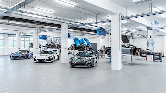 The new production line is divided into five main zones, beginning with the bonding of all brackets and fixing points onto the monocoque. Two people in each following zone then continue to build up the car piece-by-piece. Sub-assemblies like the powertrain, the dashboard, or the front radiator are built away from the line and delivered complete to be fitted.