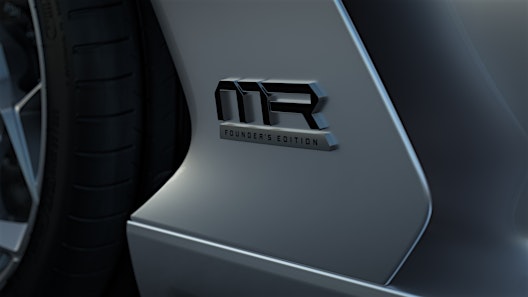 Each Founder's Edition car features a striking baseline specification centered on a two-tone design with a dramatic color split running the length of the car. "Instead of creating some shouty livery, we use the natural geometry of the car as the color division to emphasize what we're trying to achieve here," says Lead Exterior Designer Clark Yutong Wu. The split visually lowers the car, giving it an aggressive, forward-tilting stance that also creates a timeless, immediately recognisable visual identity.